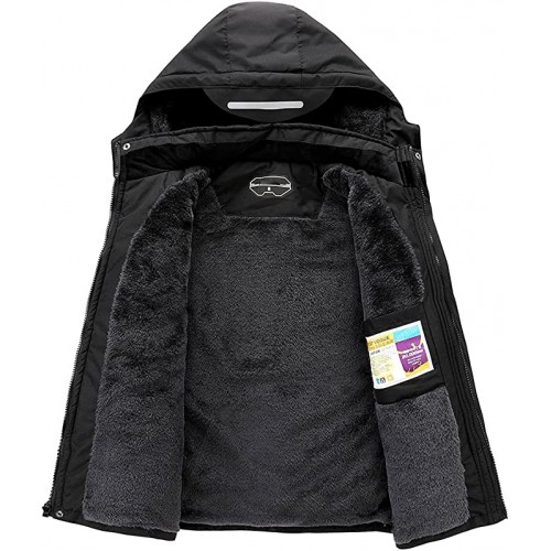 Black Boy's Waterproof Ski Jacket Warm Winter Snow Coat Fleece Snowboarding Jackets Thick Hooded Windproof Raincoat