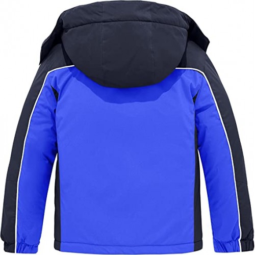 Blue Boy's Waterproof Ski Jacket Fleece Winter Outdoor Snow Coat Hooded Raincoats