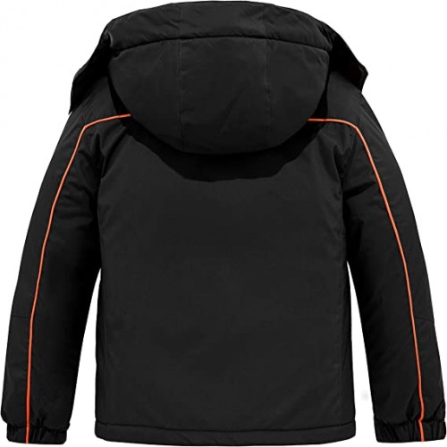 Black Boy's Waterproof Ski Jacket Fleece Winter Outdoor Snow Coat Hooded Raincoats