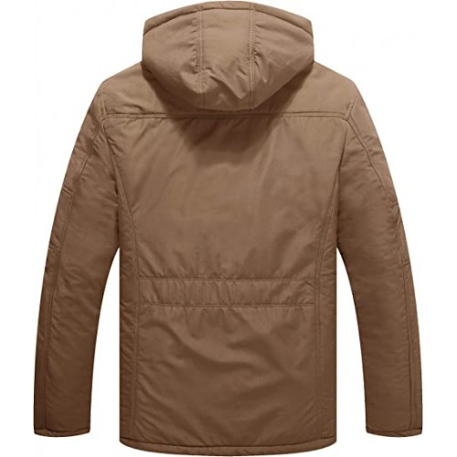 Khaki Men's Warm Thicken Hooded Parka Winter Heavy Sherpa Lined Padded Coat