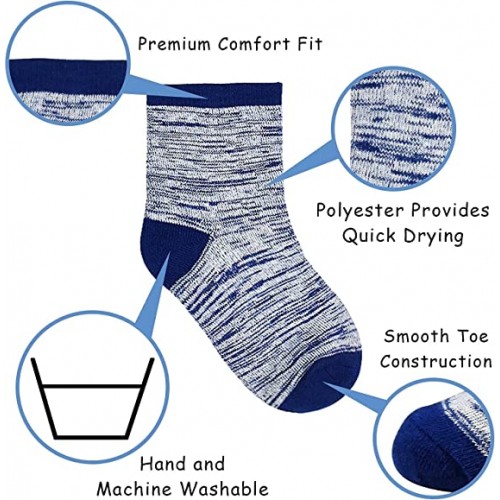 - 【12 Pairs】The crew socks are machine washable, hand wash better. For your kid’s easier wearing and replacement, the package includes 12 pairs of half cushion socks. With this 12-pair pack, you’re bound to always have a clean, fresh pair.